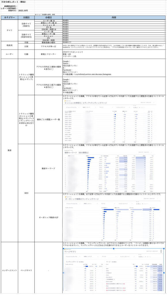 基本的にはそのフォーマットがあれば翌月以降、より効果的にレポートを閲覧いただけます。